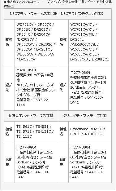 レンタルモデムの返却先は、ご利用のコースやモデムの種類によって異なります。