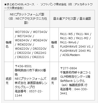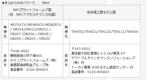 Q-16. 【ブロードバンド接続各コースについて】退会に際し、まとめてADSLコースでレンタルしているADSLモデムの返却方法を教えてください