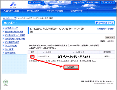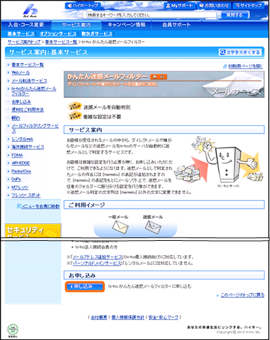 hi-hoかんたん迷惑メールフィルターの申し込み手順を教えてください